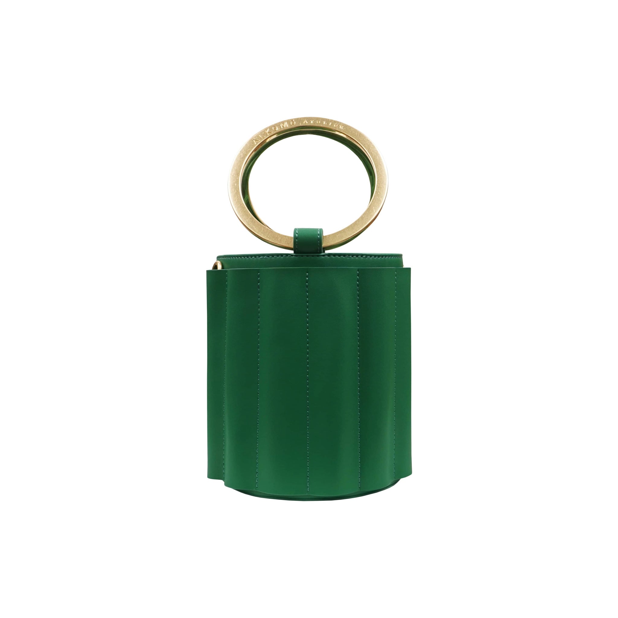 ALKEME ATELIER HANDBAG Green Water Metal Handle Vegan Bucket Small Bag