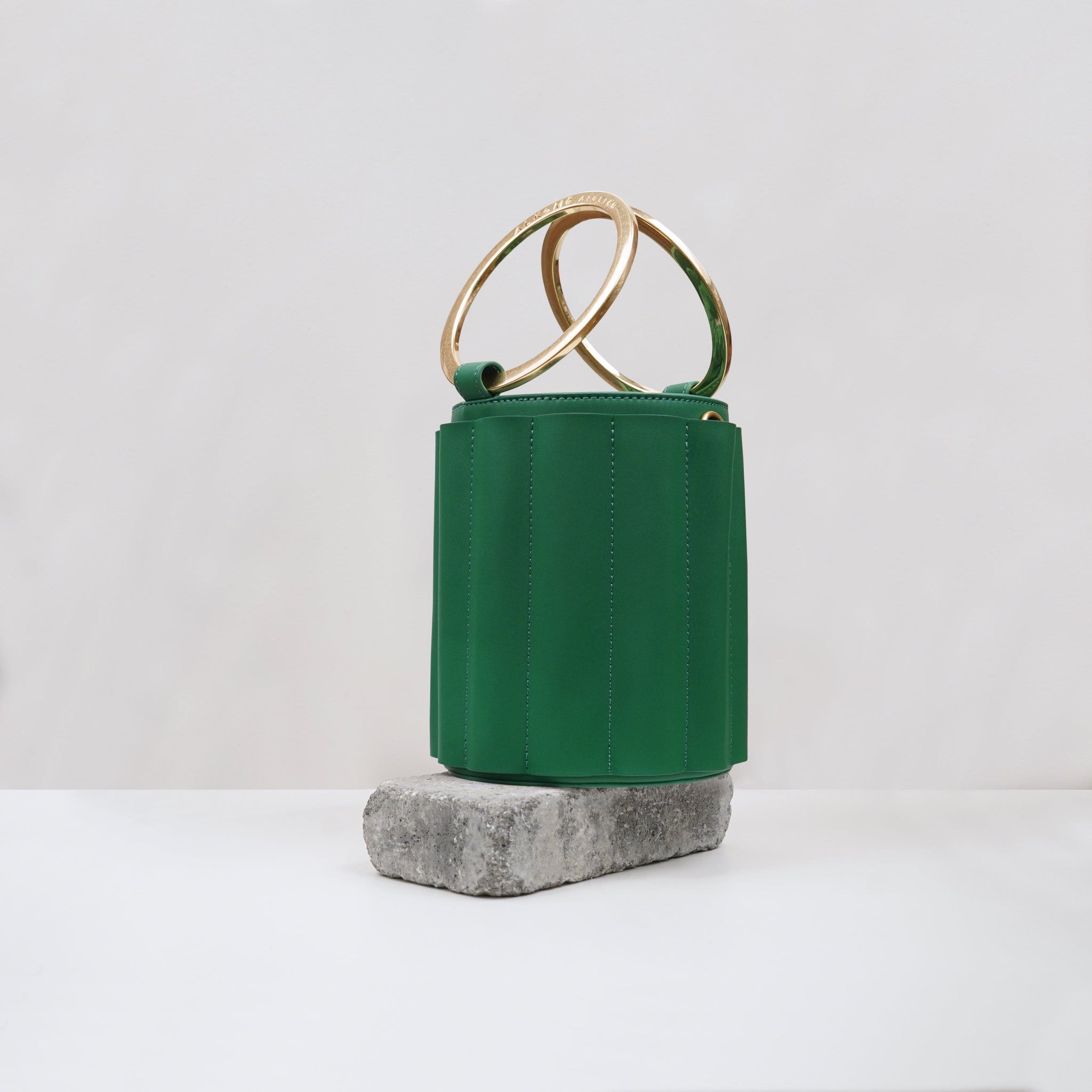 ALKEME ATELIER HANDBAG Green Water Metal Handle Vegan Bucket Small Bag