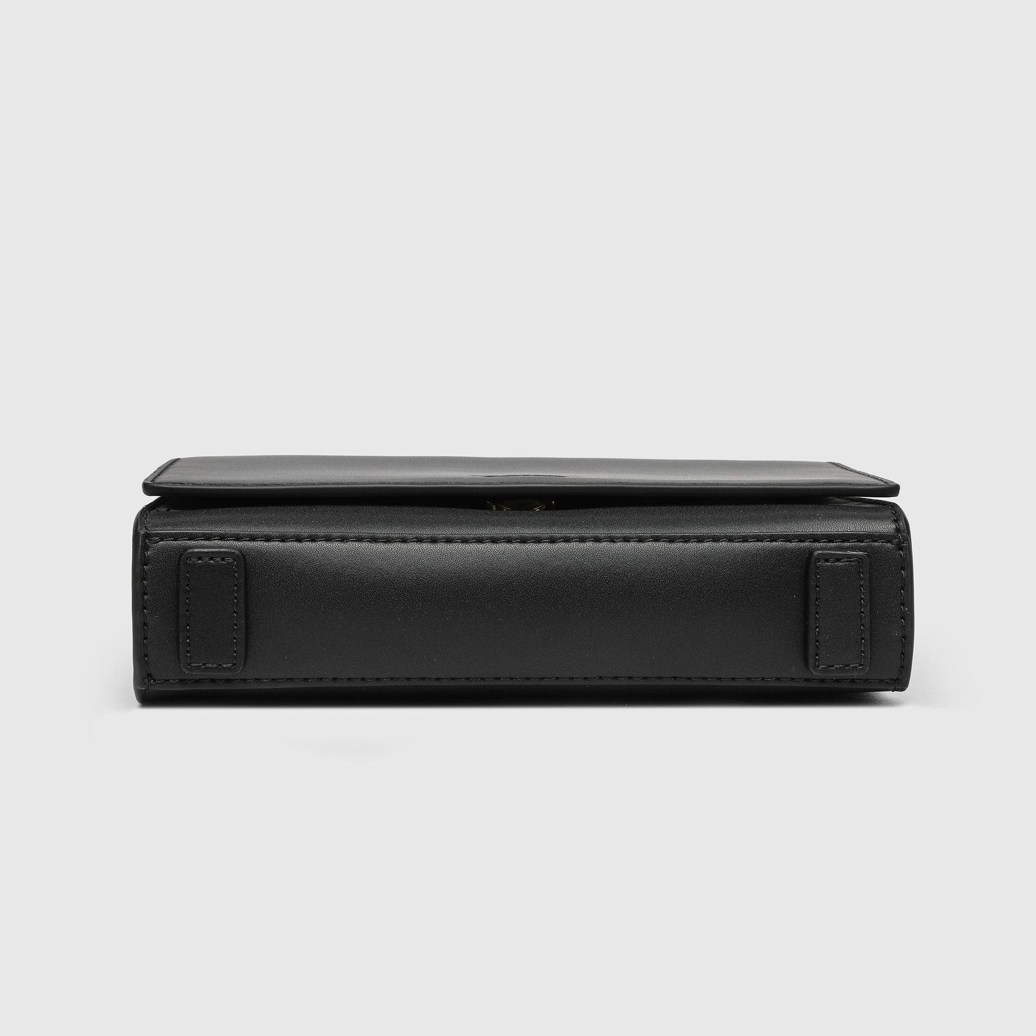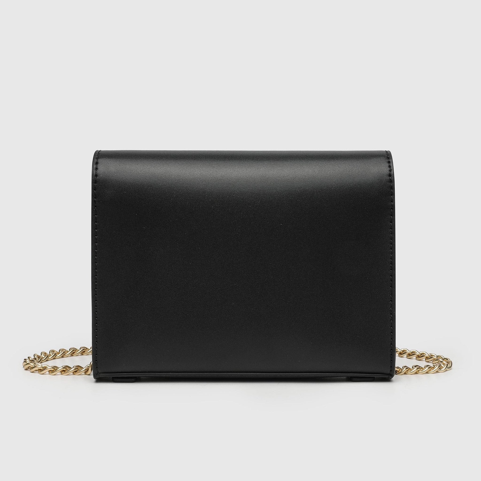 - Long metal chain strap with vegan leather at shoulder area